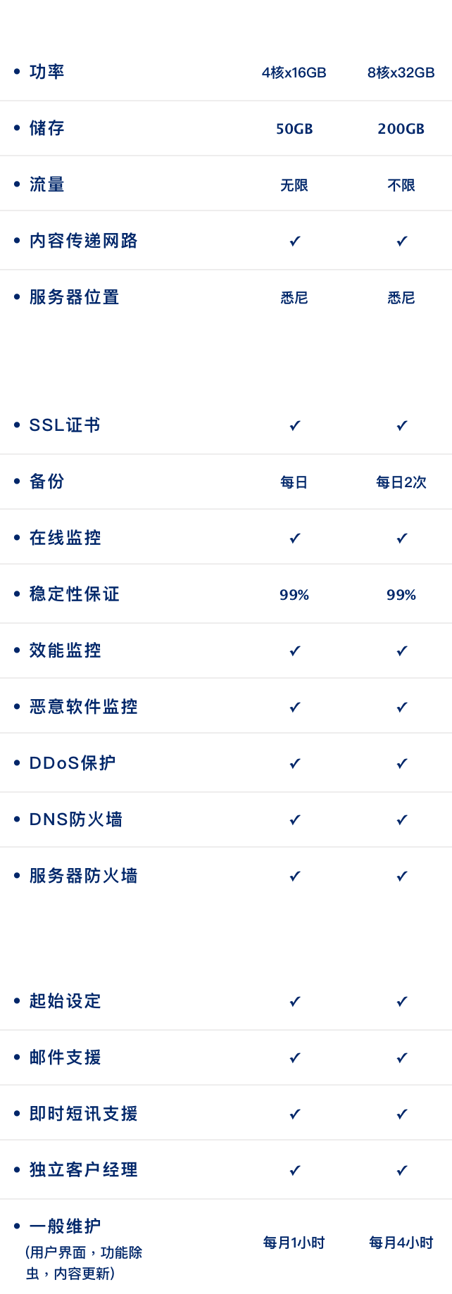 *谷歌广告和社交媒体广告服务将按品牌和企业的个别情况作出调整以增强推广效益。此表格只作参考用途,微思科技将在服务开展时向客户列出因应个别情况对服务所提供项目的修改,套餐费用以工作时数计算,微思将尽力确保服务项目修改后工作时数与套餐内所需时数相等。以上套餐仅供每月预算少于或等于$3,000的客户,每月预算高于$4,000的客户,微思将按$4,000后的额外金额收取20%的服务费。