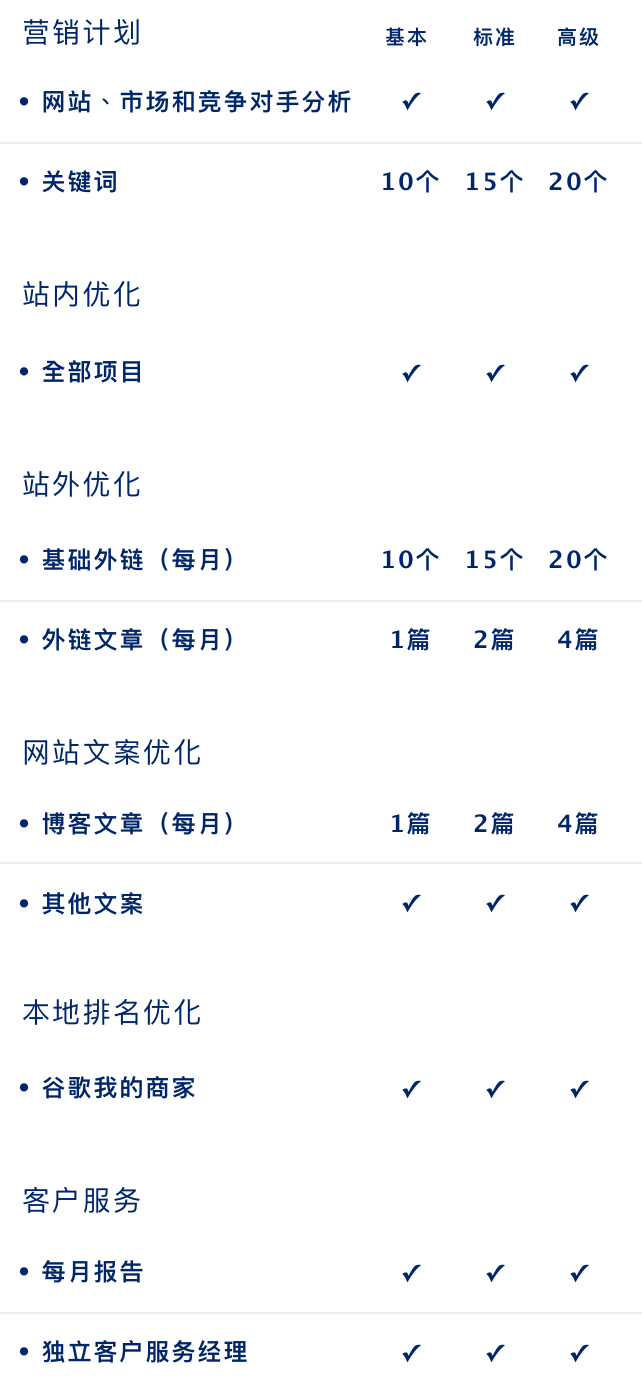 我们的团队会按您选择的配套提供相关的服务,并于每月缴费前提供上月报告,让您能了解当月的优化效果。