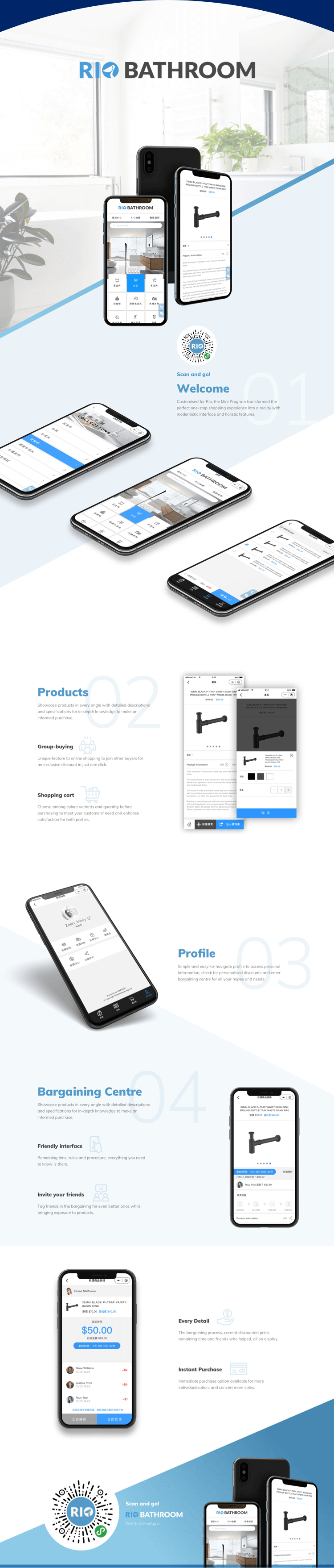 微思科技为rio卫浴量身设计与开发了一个线上商城,界面清新友好,功能完善齐全,用户可通过微信小程序入口在线浏览和购买各类商品产品,真正做到一站式购物。
